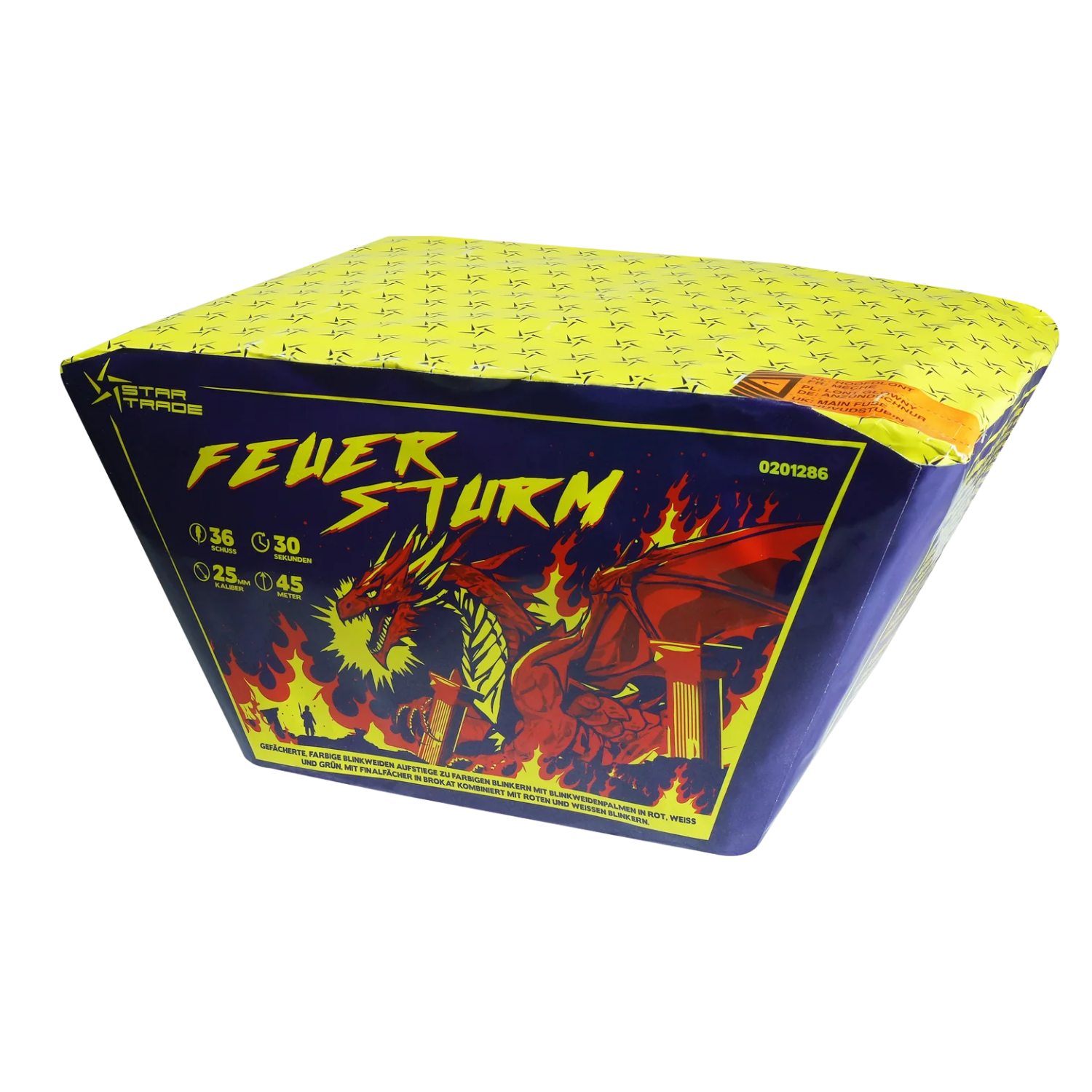 Zum Abschluss zündet die Feuersturm ein markantes Doppelfinale im Fächer, bestehend aus Brokat-Effekten und stark funkelnden Blinksternen. Mit 36 Schuss sorgt diese Batterie garantiert dafür, dass deine Nachbarn staunen werden – perfekt für ein eindrucksvolles Silvesterfinale.